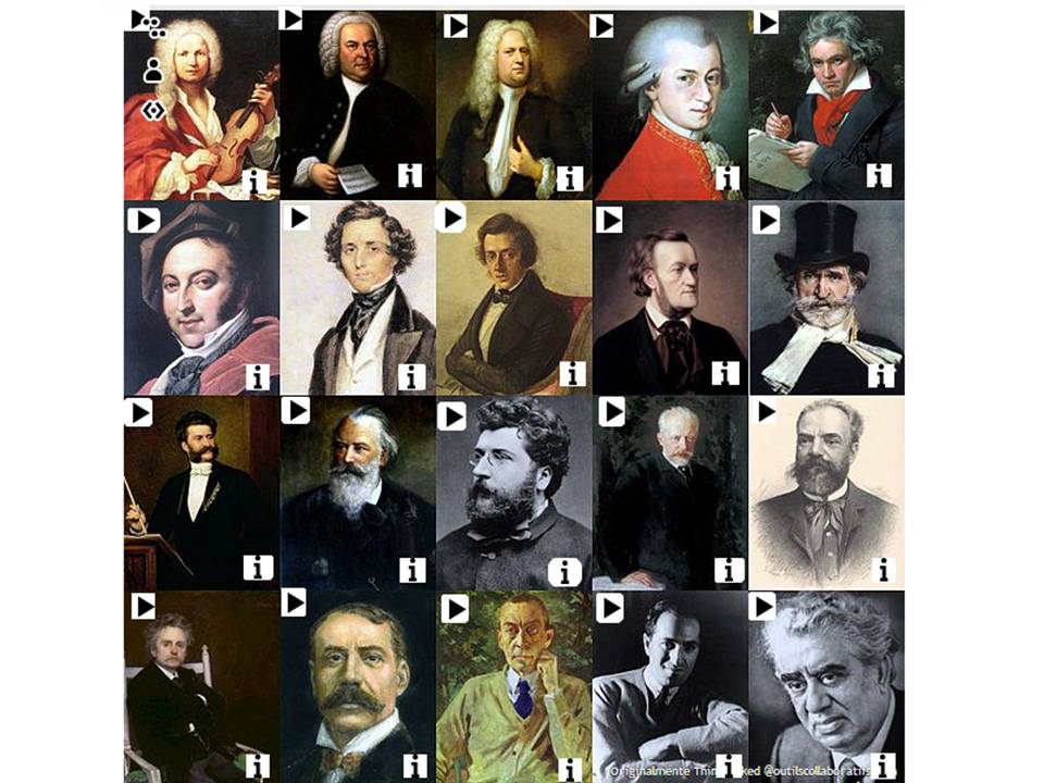 La profesora Biotz Fradua, compañera colaboradora en el proyecto Kantaconmigo, ha elaborado este mural con las fotos de los grandes compositores de la historia, en la que ha enlazado un vídeo con una obra de cada autor, y su enlace a Wikipedia para que sepamos más sobre su vida y sus obras.
